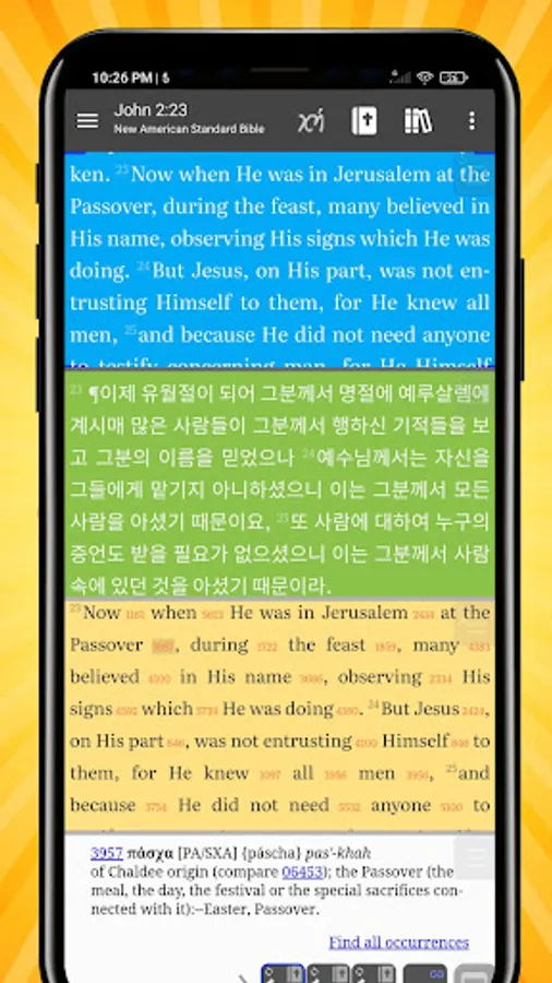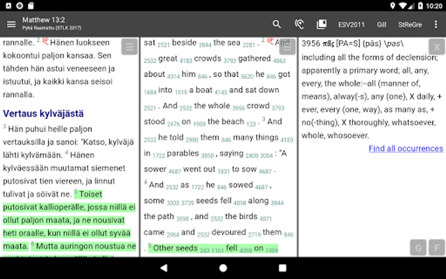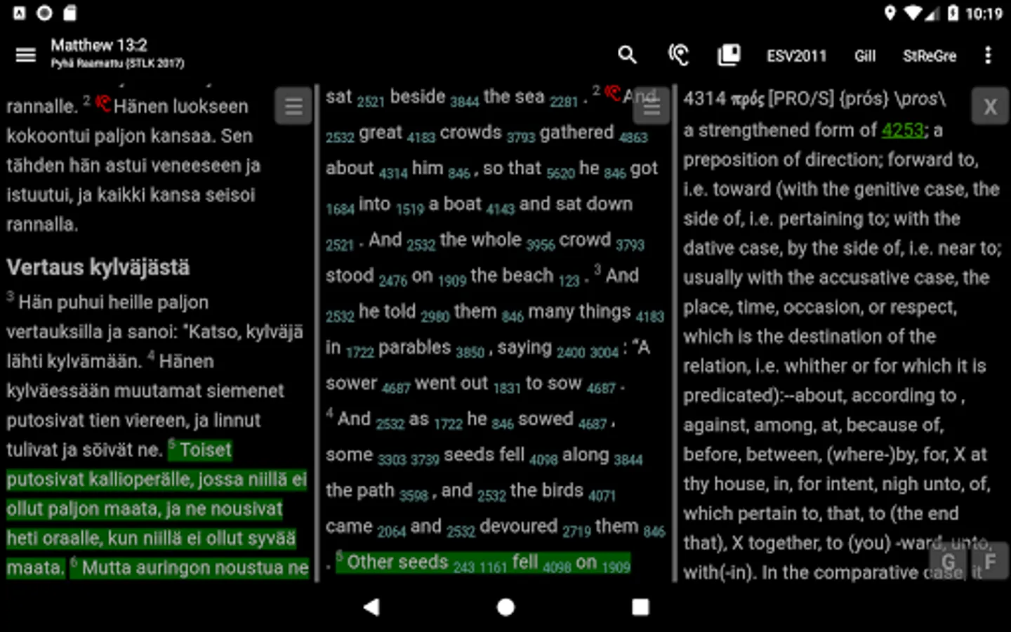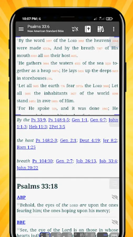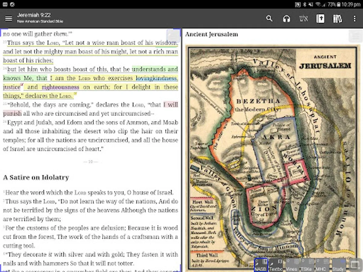 * Linked cross-references, footnotes, and documents; jump to cross-references and footnotes by simply tapping a link; perform in-depth study of the Scriptures by using hyperlinked commentaries (Gill, Matthew Henry etc.), cross-reference collections (Treasure of Scripture Knowledge, TSKe) and other resources.