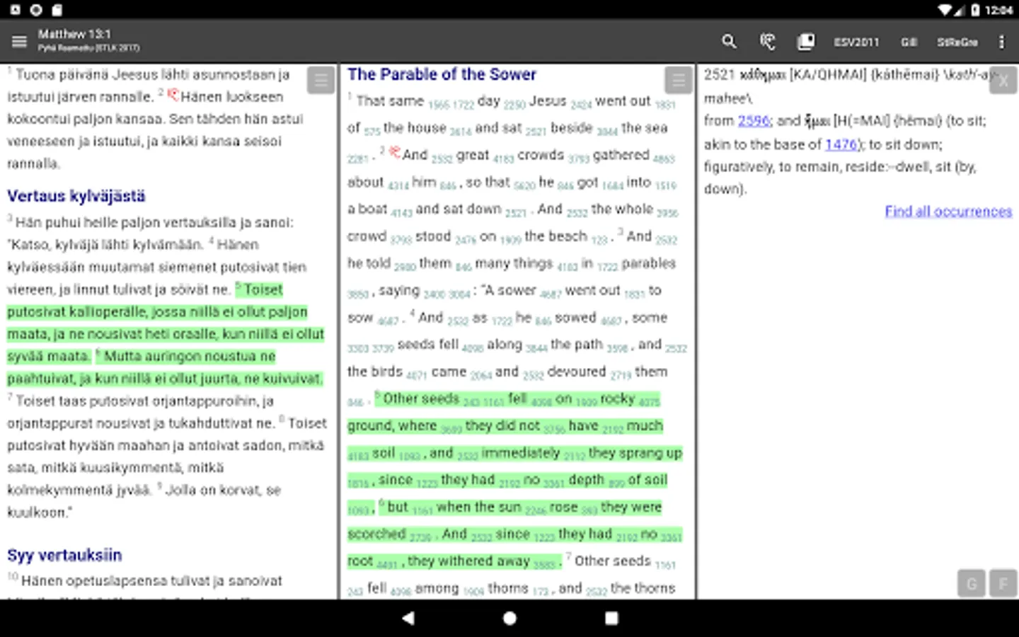 "AndBible: Bible Study" is a powerful, yet easy to use, offline Bible study application for Android. The app does not aim to be simply a Bible reader, but focuses on being an advanced tool to do in-depth personal Bible study.