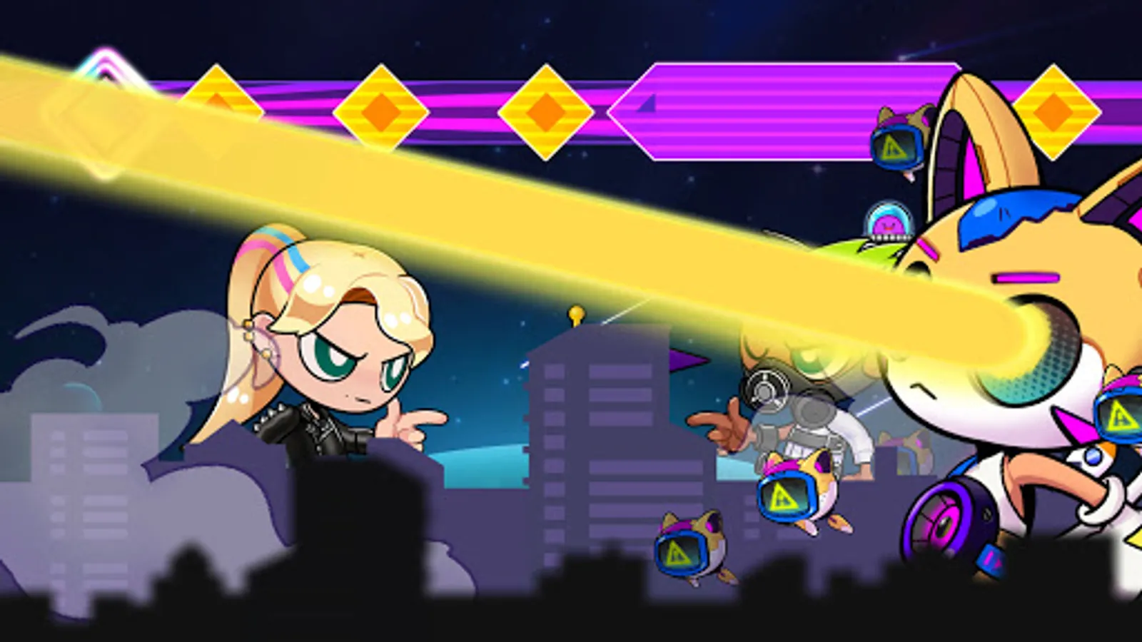 "Battle Flex" is not like other hardcore rhythm games, controlling is a simple one-line swipe or tab. You can play strategically with other players by using your skills.