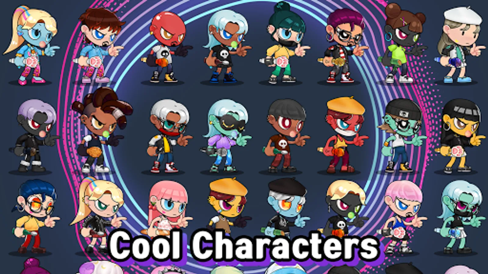 - Design your own characters by combining 11 different parts