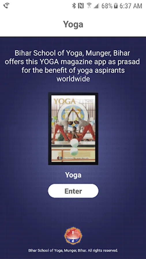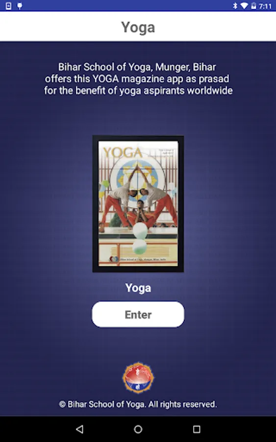 YOGA is compiled, composed and published by the sannyasin disciples of Sri Swami Satyananda Saraswati for the benefit of all people who seek health, happiness and enlightenment. It contains information about the activities of Bihar School of Yoga, Bihar Yoga Bharati, Yoga Publications Trust and Yoga Research Fellowship.