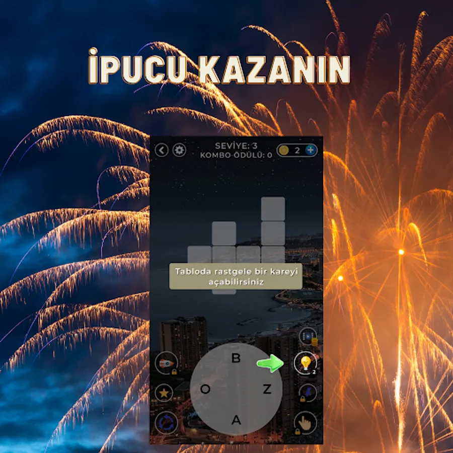 - Gizli kelimeleri tamamlayarak bonus jeton kazanın.