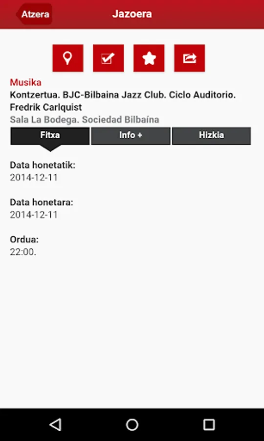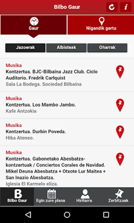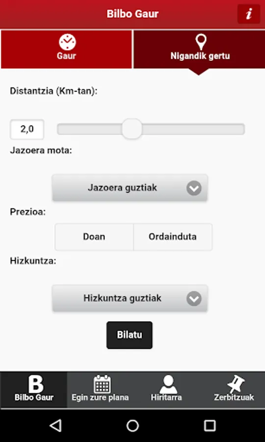 Eguneko ekitaldi guztiak, geoposizionamenduz eginiko bilaketan, zauden Lekutik inguruan dituzun aurkitzeko jarduerak.