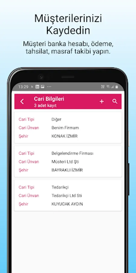 - You can keep the details of your current clients such as address, bank, employee. You can record collections and payments.