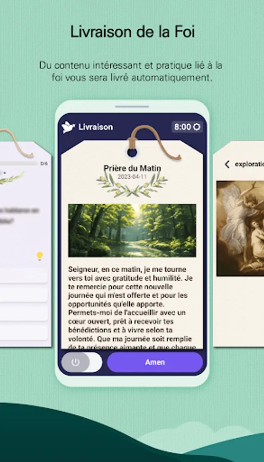 Through the "Delivery of Faith", you can receive various prayer topics every day and, at the same time, convey various thoughts and requests to God.