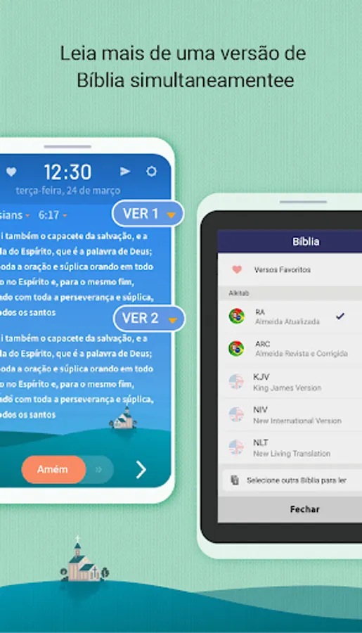 If you believe in God, you should read the entire Bible at least once. It's important to go to church, but don't forget to read your Bible and pray. Get started right now with the 'BitBíblia' application.