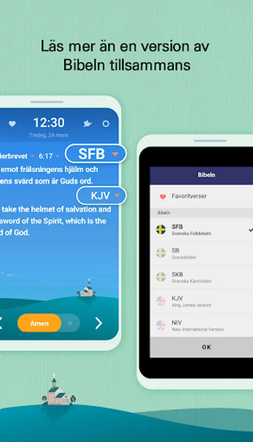 If you believe in God, you should read the entire Bible at least once. Going to church is important, but don't forget to read the Bible and pray. Start right now with the 'BitBibeln' app.