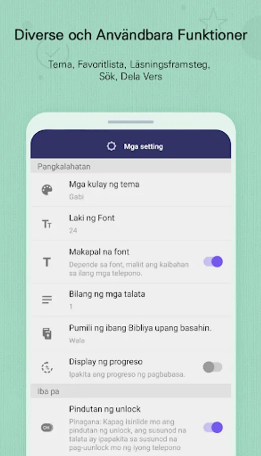 Note: Reading the Bible on the "lock screen" is the sole purpose of this app, and this app is a "specialized lock screen app".