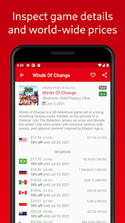 Easily discover games currently on sale. Find the cheapest offer, spot the biggest discounts and get the best value for your money.
