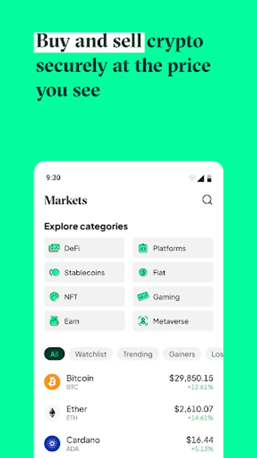 * Explore assets by category from DeFi, Gaming, NFT, Metaverse, Layer 1 /Layer 2, and more