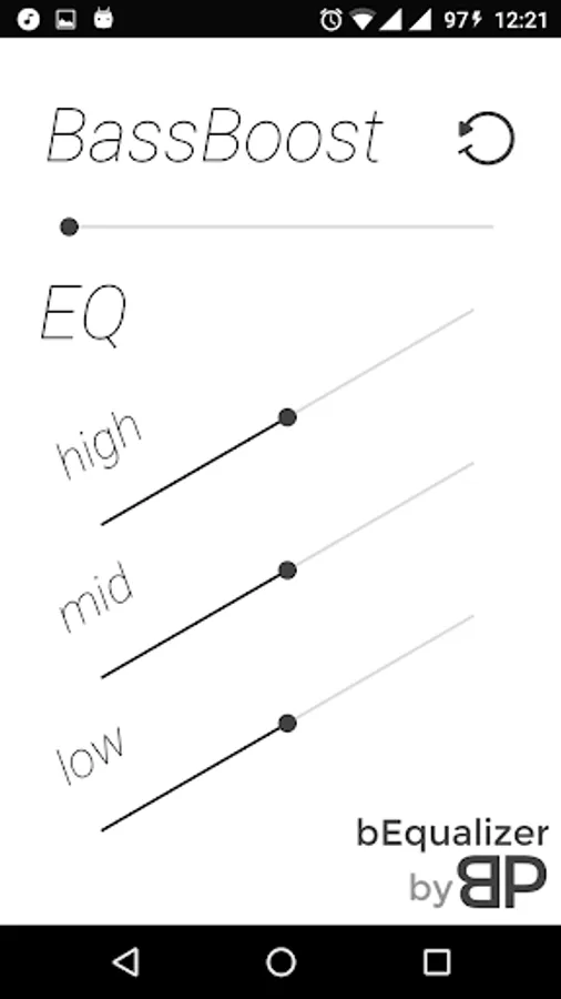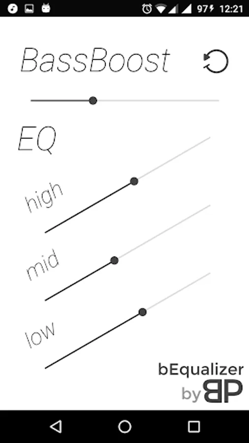 bEqualizer is as free, as it is ad-free. It's simple and gives you four basic functions: BassBoost, Eq-Highs, Eq-Mids, Eq-Lows. There's nothing more you need.