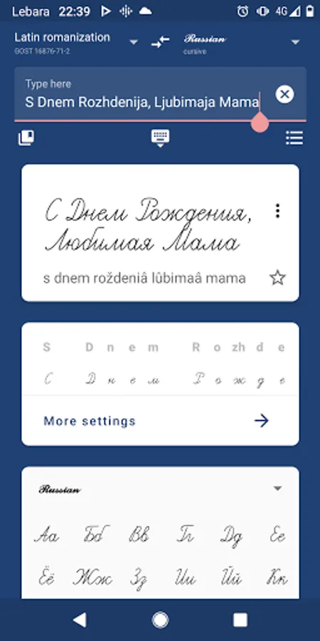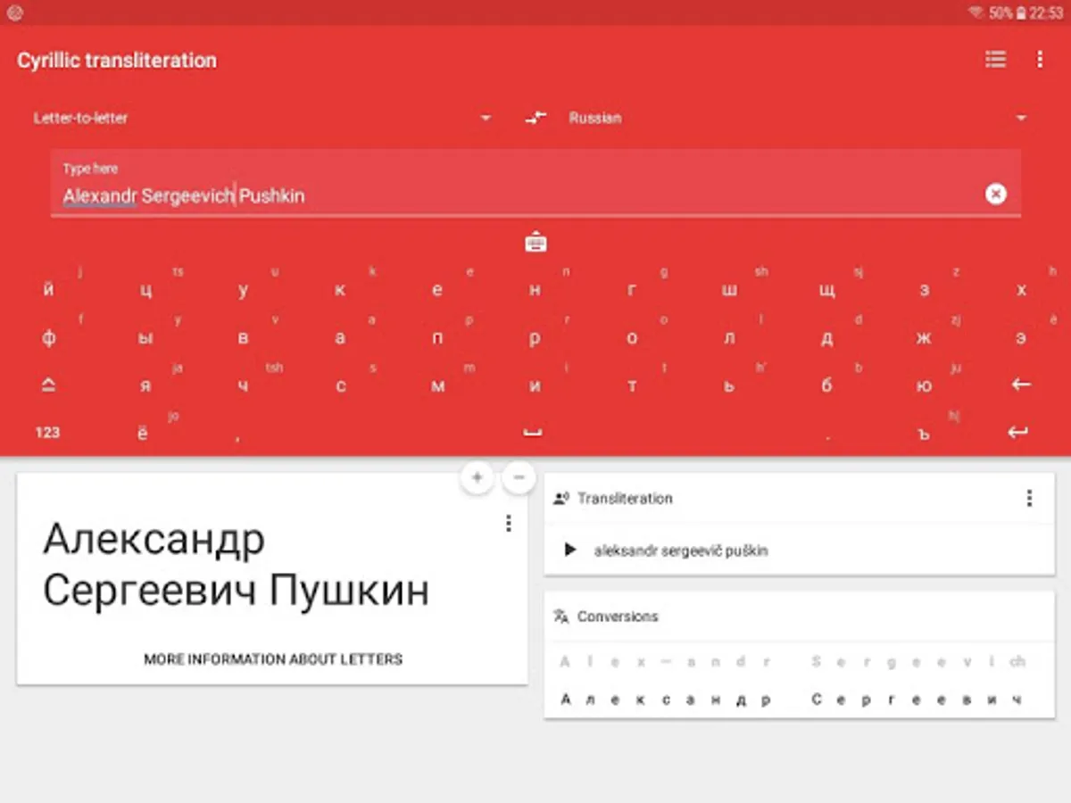 Premium users can install a keyboard to quickly toggle between Cyrillic and Latin writing, either: