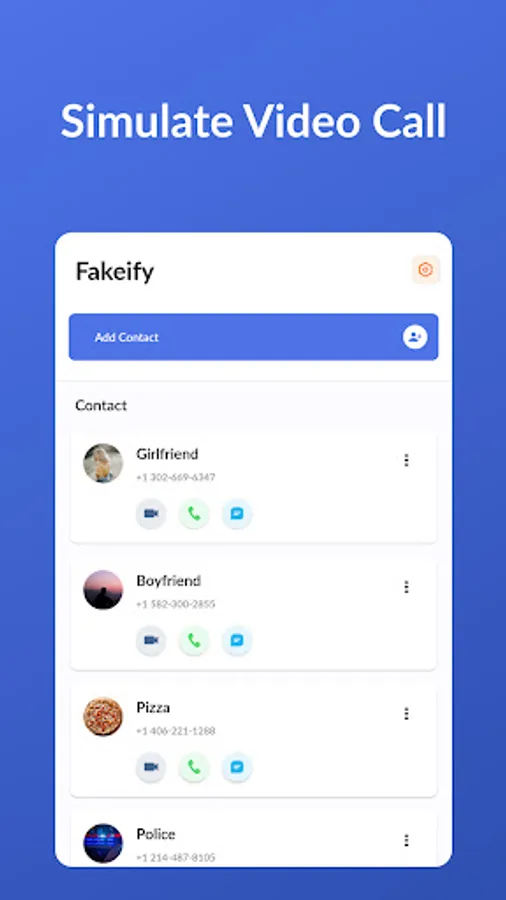 ⭐ Pick from sample contacts in the App, get fake call from Girlfriend, Boyfriend, Police, or Pizza Delivery