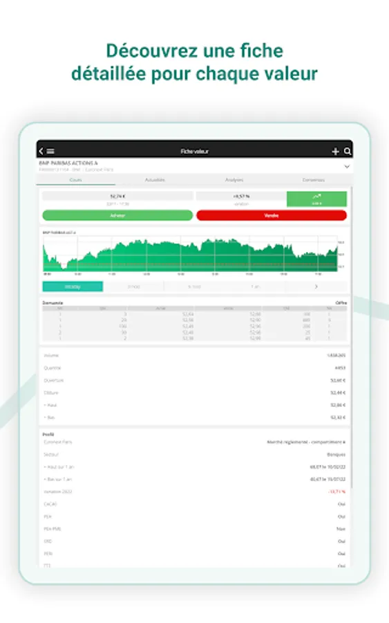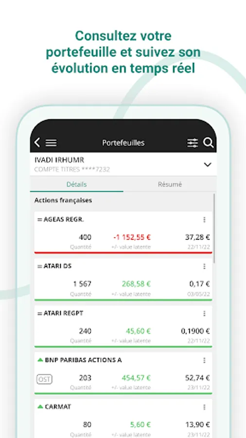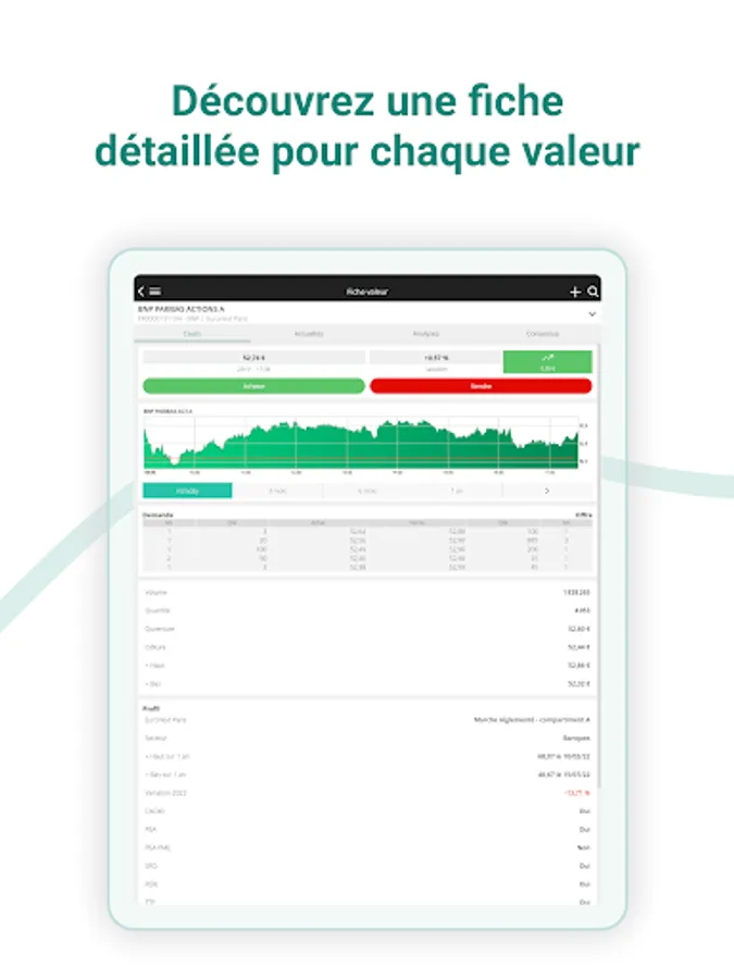 • Discover a detailed sheet for each value (shares, OPC, ETF, Warrant, …).