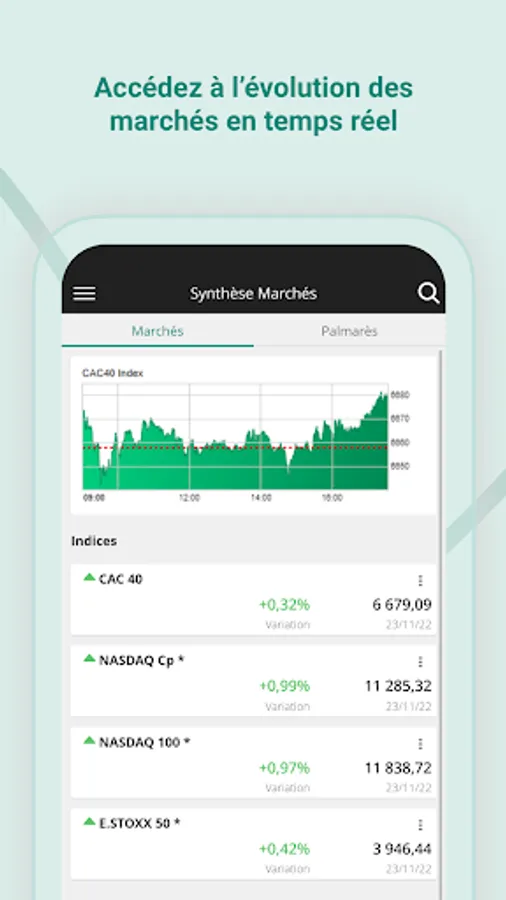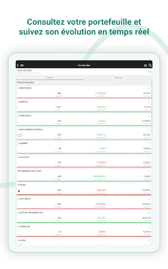 • Find your portfolio in real time for Euronext Paris, Amsterdam and Brussels securities and follow your current orders.