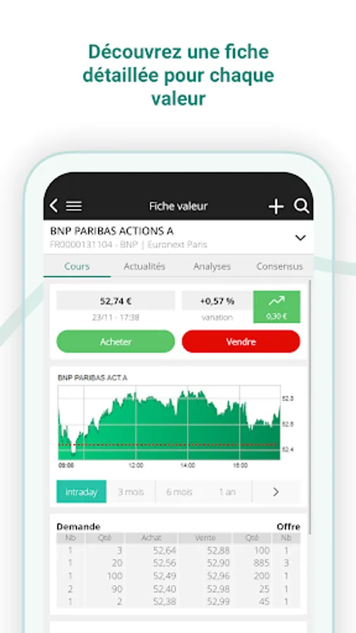 Manage and follow your portfolios with the BNP Paribas Stock Exchange application in complete freedom!