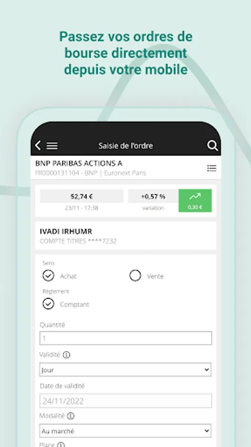 *** You must have an ordinary securities account, PEA or PEA-PME BNP Paribas to use the application.***