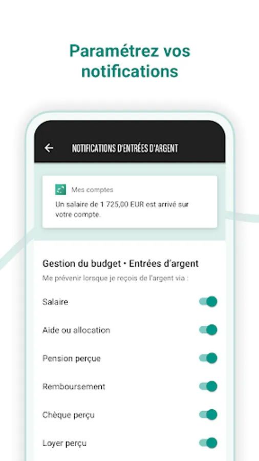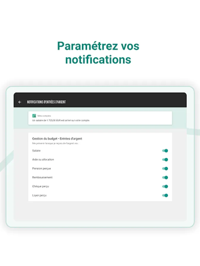 • Activate the notifications of your choice in order to be informed and to benefit from better monitoring of the activity of your account.