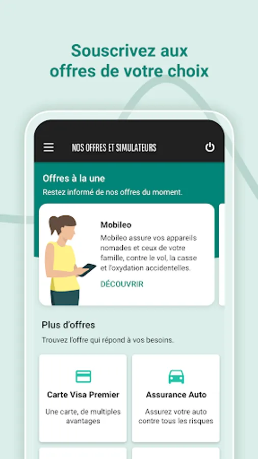 Discover all of our banking products and services and subscribe directly to the offers that meet your needs: savings accounts, insurance, loans, bank cards, etc.