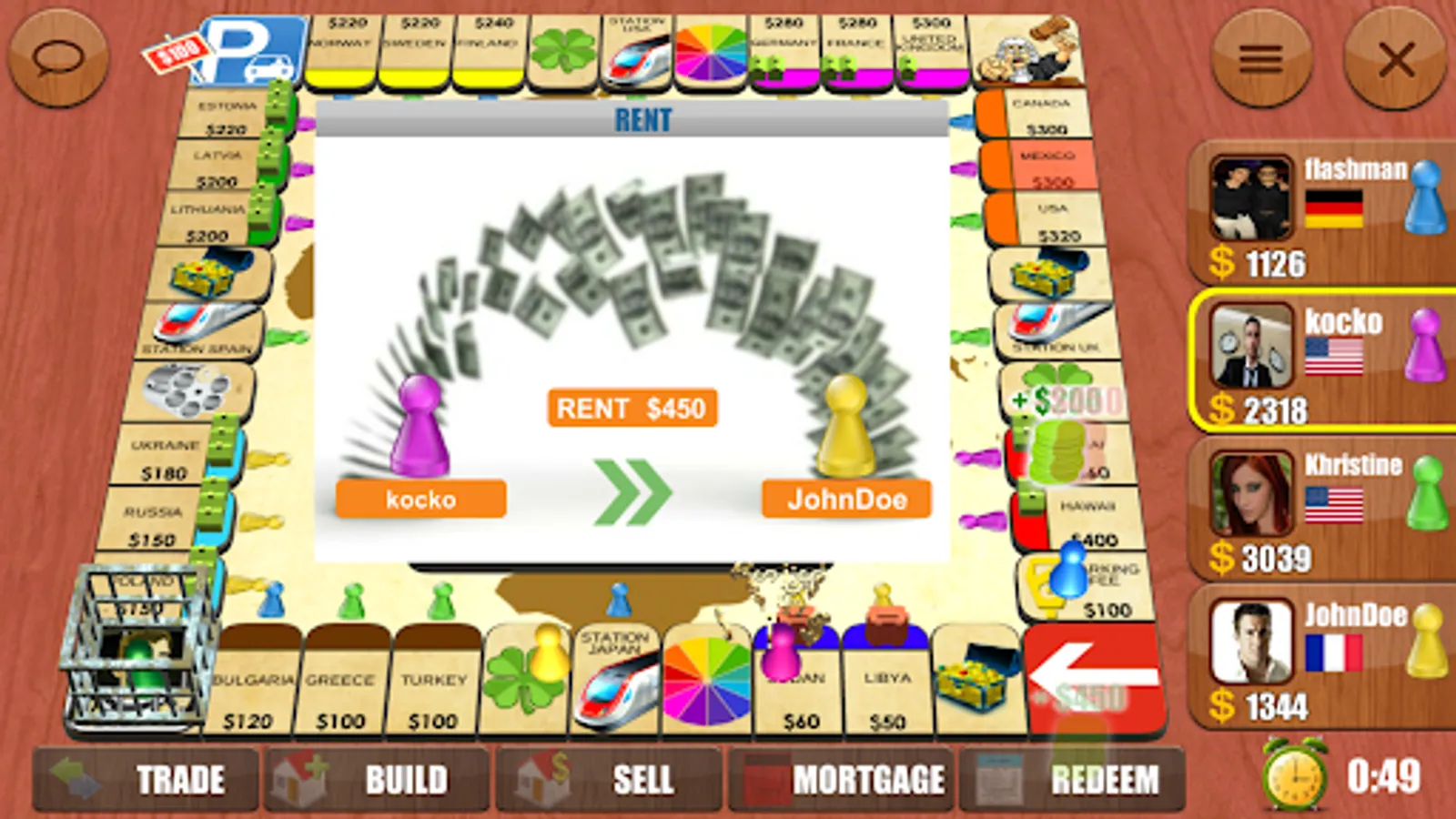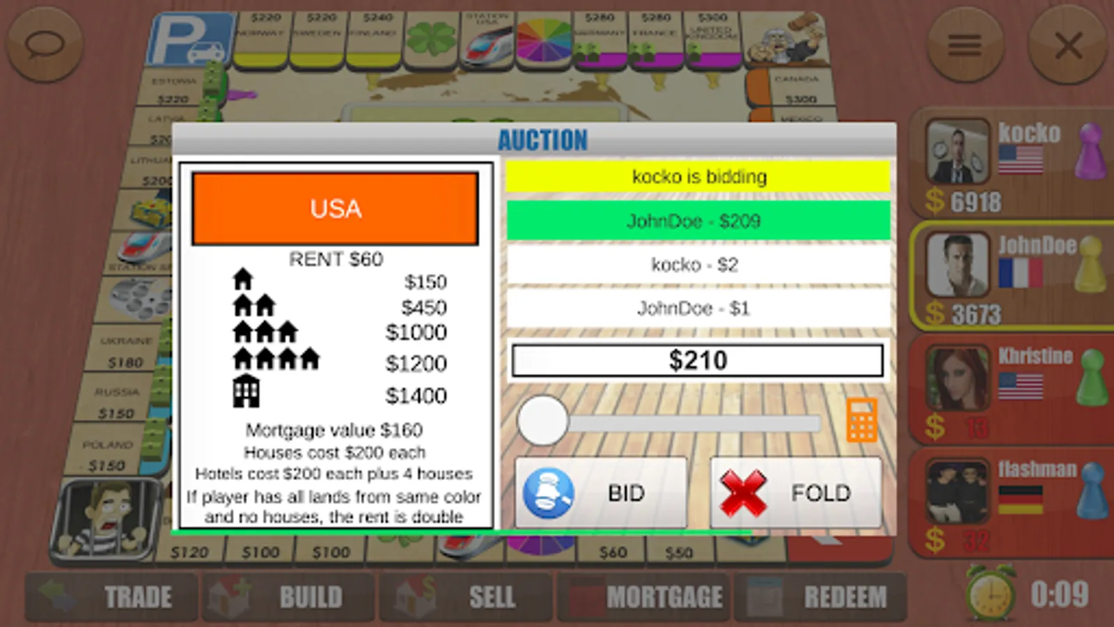 In order to win, you have to upgrade your castles, exchange lands, participate in auctions, spin the Fortune wheel, engage in RussianRouletts and ultimately - bankrupt your friends.