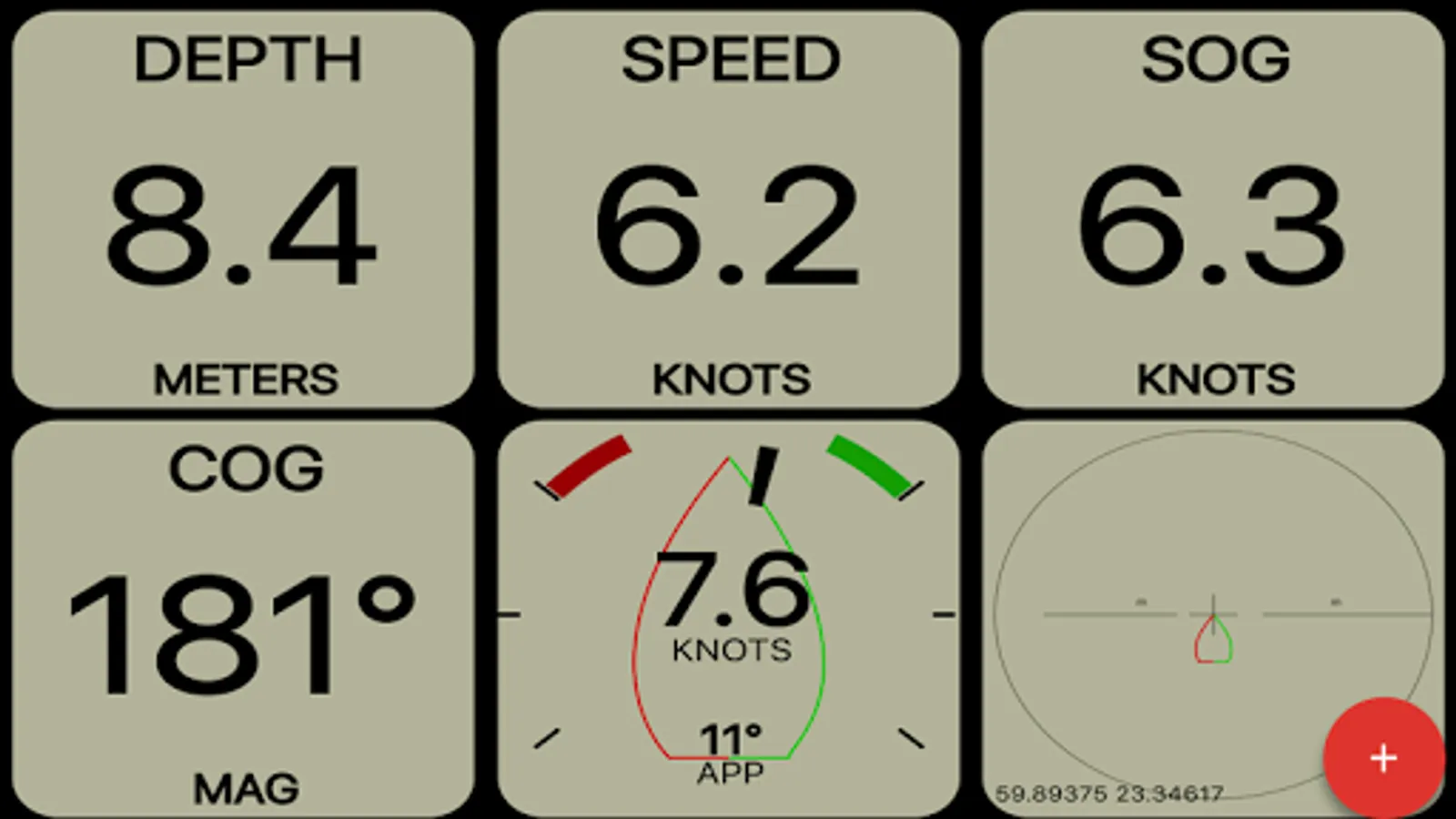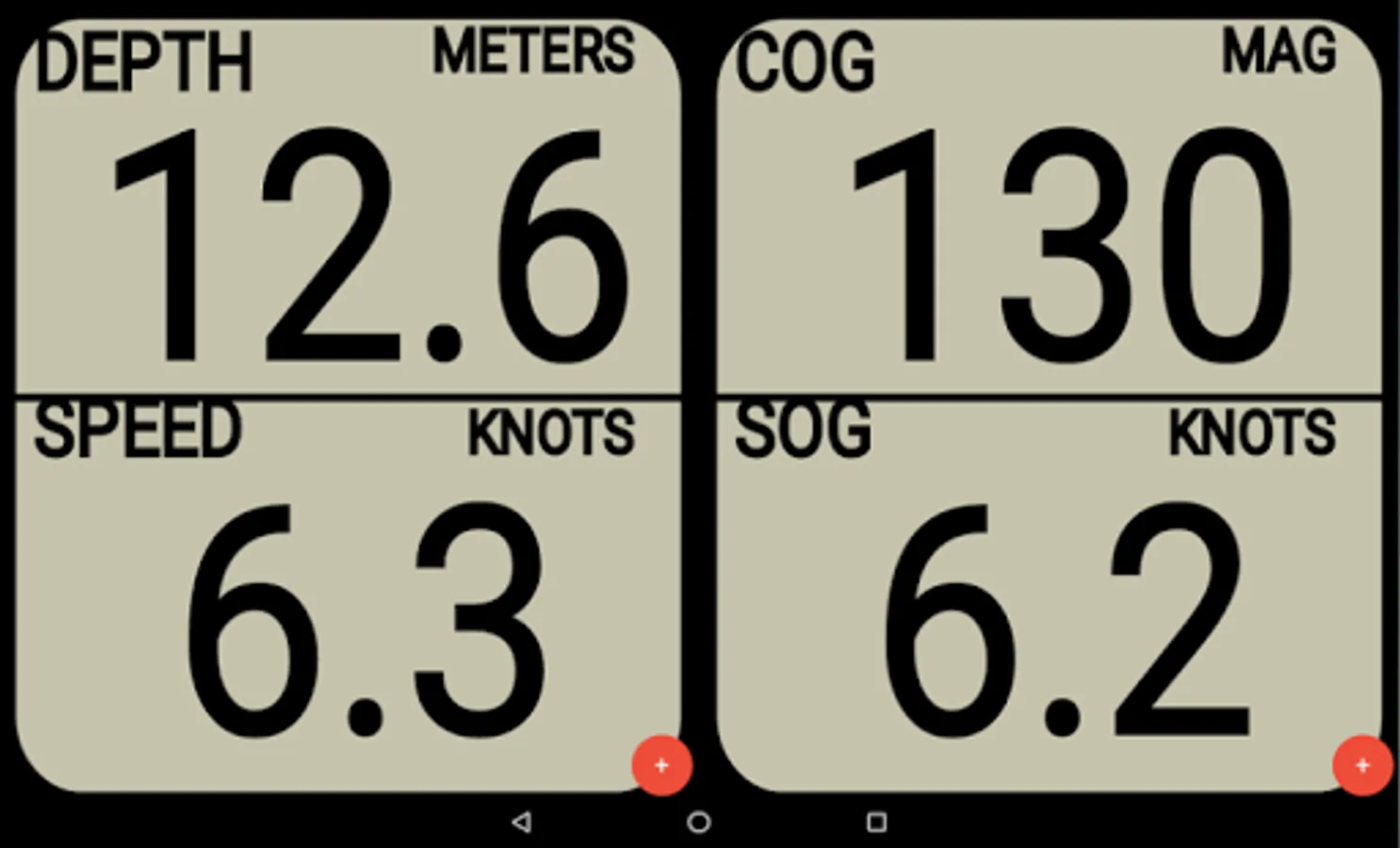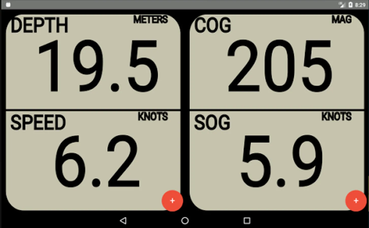 Display data from devices on your boat, e.g. Depth, Speed, Heading, GPS position, COG, SOG, Wind speed and angle, Log, VMG, Average speeds(Wind speed, STW, SOG). Sensors e.g. Air/Sea temperature, Air Pressure and Humidity, Heel and Pitch. Includes an Anchor Watch with audible alarm and a rudimentary AIS screen which will improve over time.