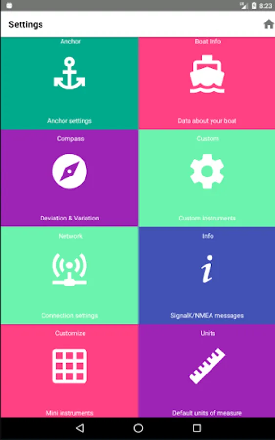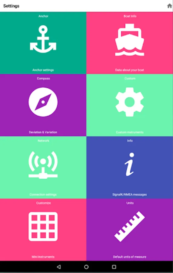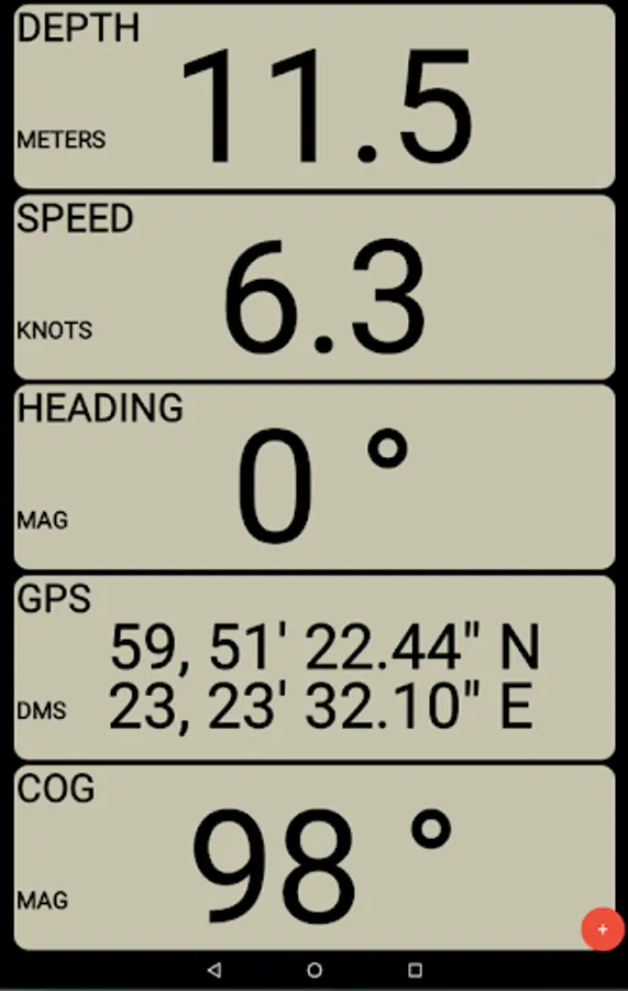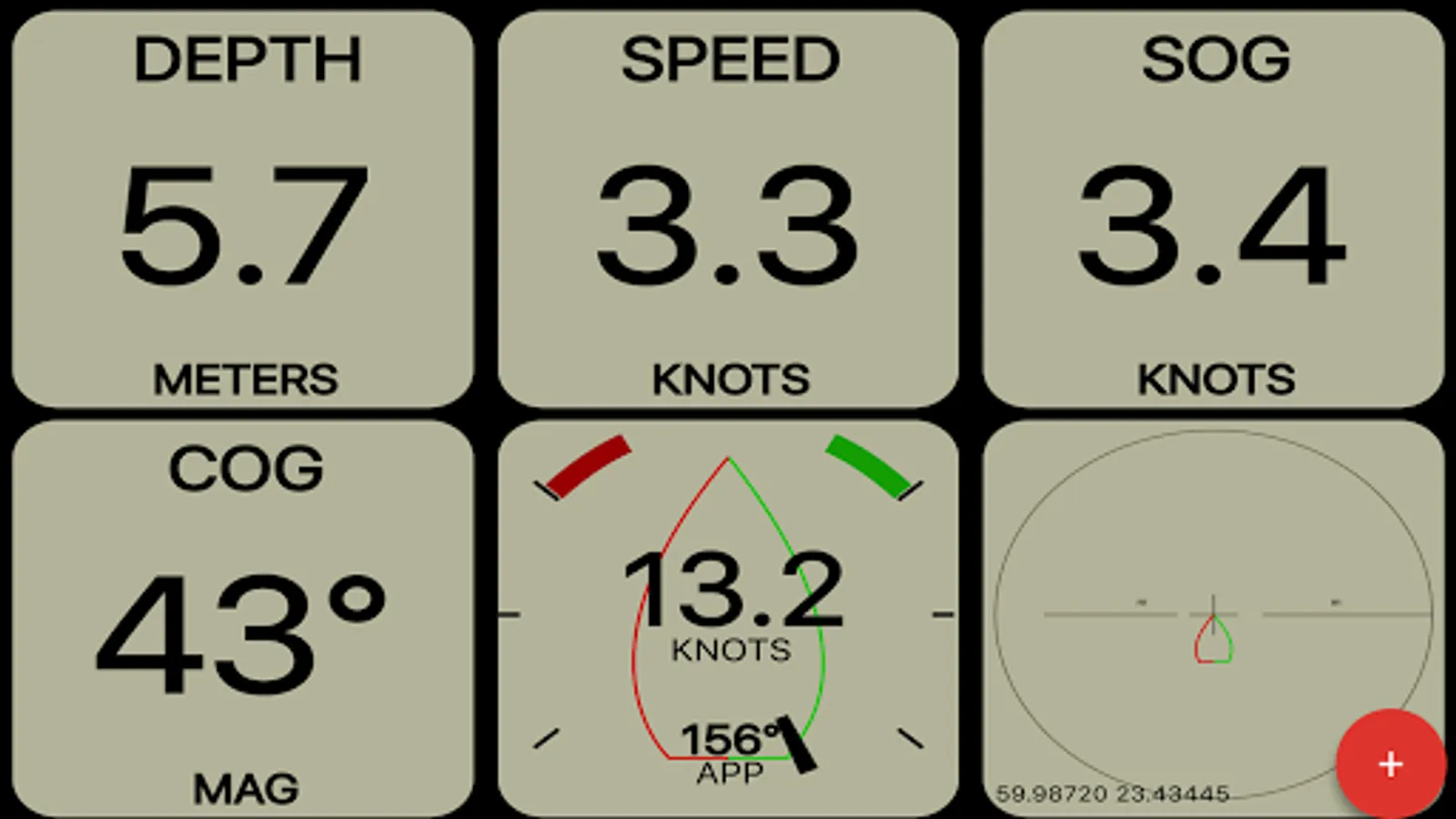 Display data from devices on your boat, e.g. Depth, Speed, Heading, GPS position, COG, SOG, Wind speed and angle, Log, VMG, Average speeds(Wind speed, STW, SOG). Sensors e.g. Air/Sea temperature, Air Pressure and Humidity, Heel and Pitch. Includes an Anchor Watch with audible alarm and a rudimentary AIS screen which will improve over time.