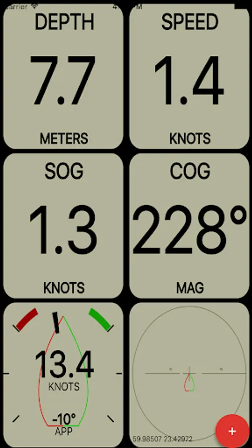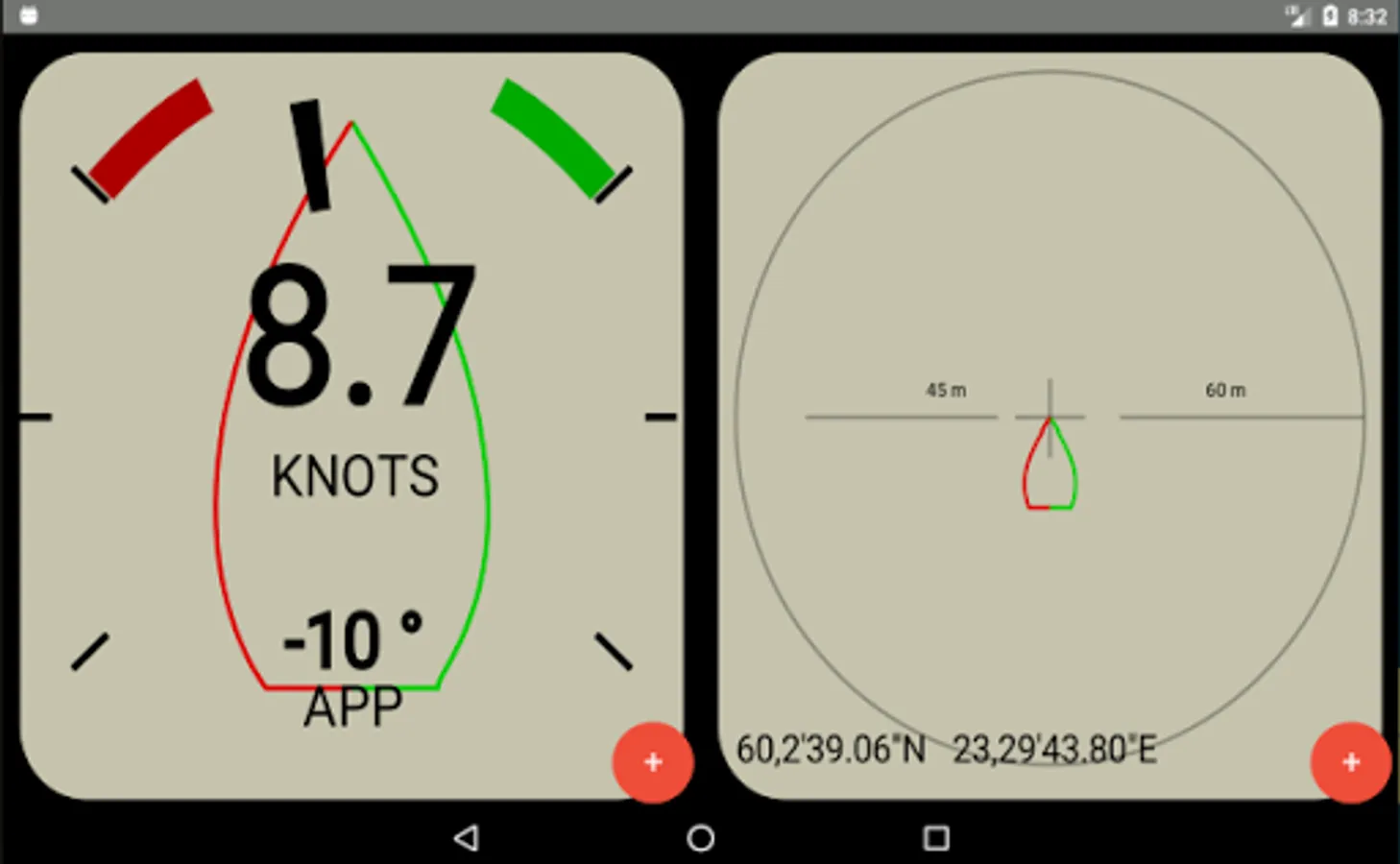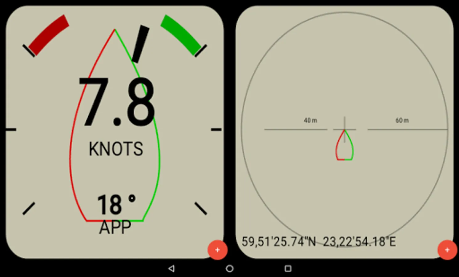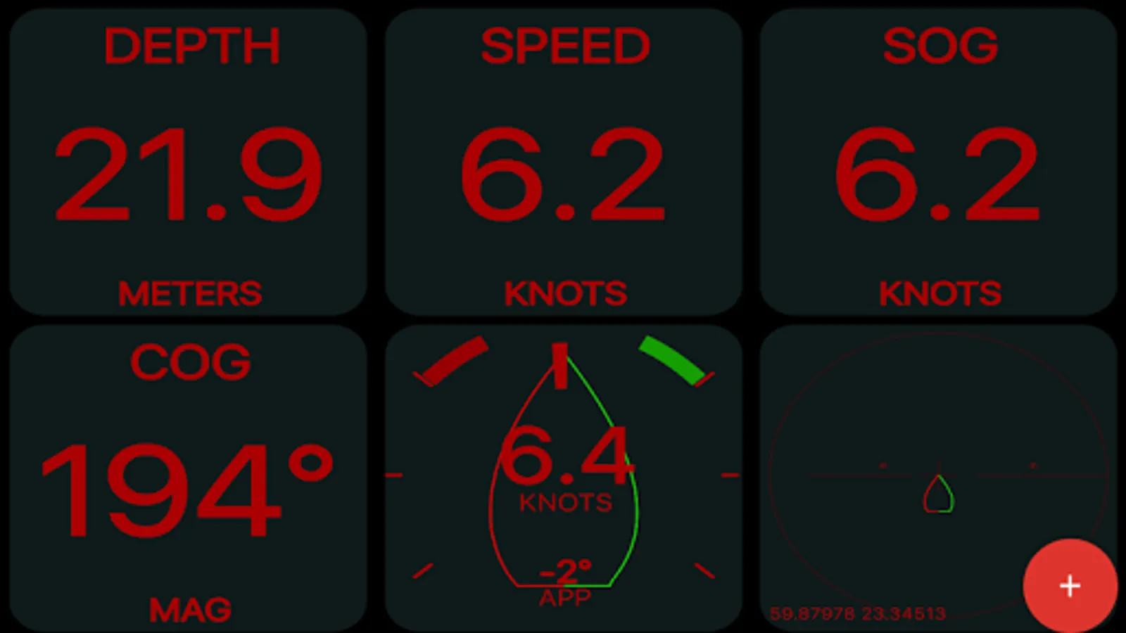 Display depth, speed and GPS position in various formats, display True, Magnetic and Apparent angles. Turn on night mode to preserve night vision. Swipe to view more instruments and customize the selection and order of instruments.