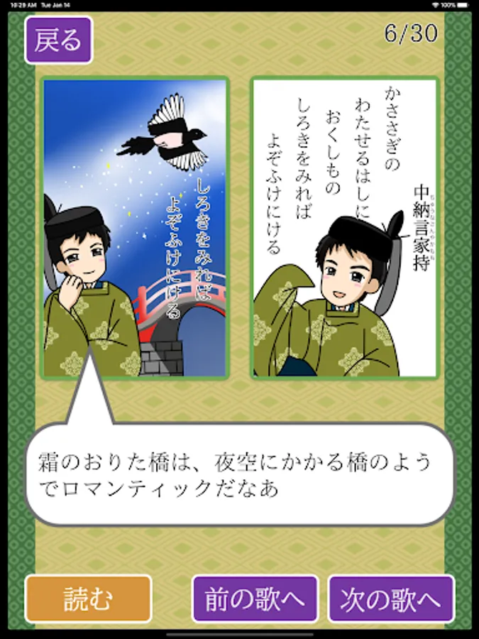 楽しいかるたとりのゲームや、読み上げを聞くことで、効果的に百人一首を学ぶことができます。