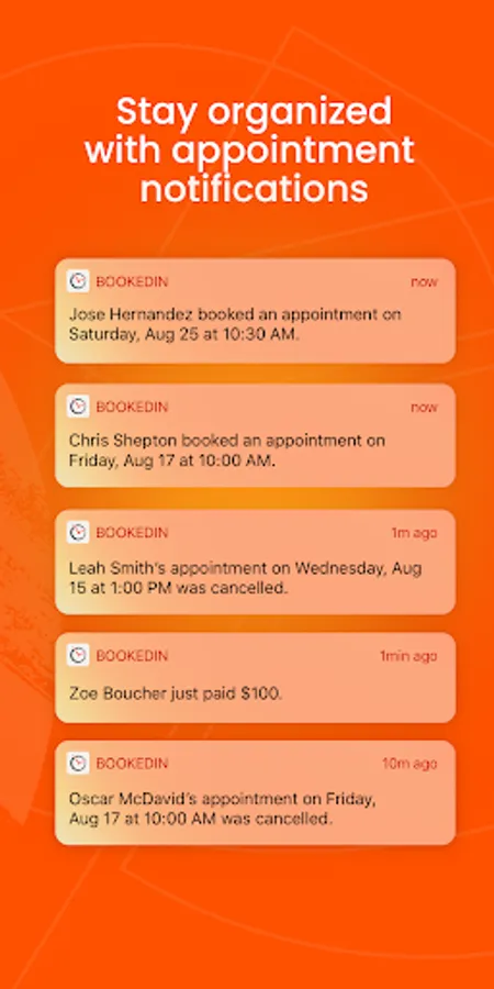 • Branded online booking link for your clients. Ex: bookedin.com/book/bobs-barbershop