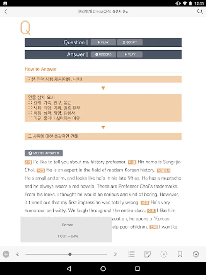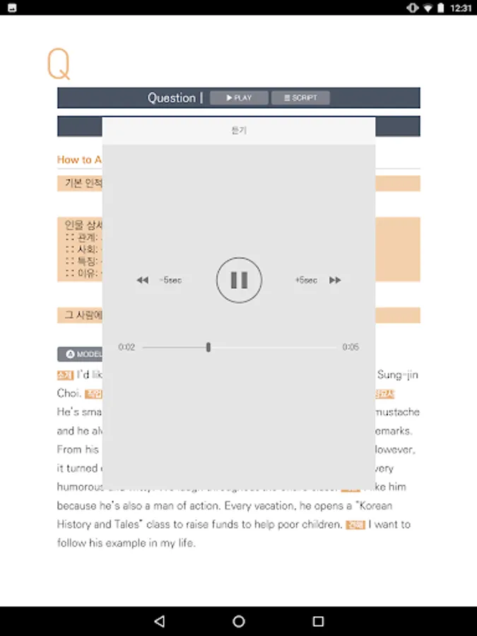 5. standing right sseomeokneun Credu OPIc practice test sites on the Intermediate