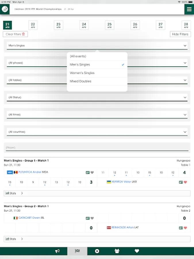 Official IOS application for Liebherr 2019 ITTF World Table Tennis Championships - ITTF.