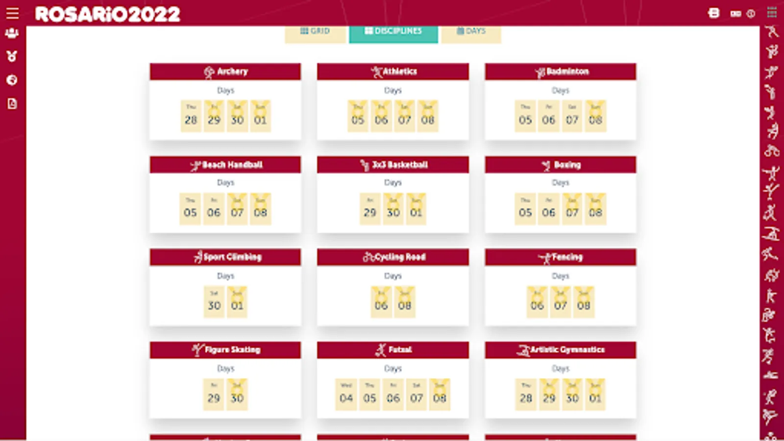 - To consult the schedule of the competitions.