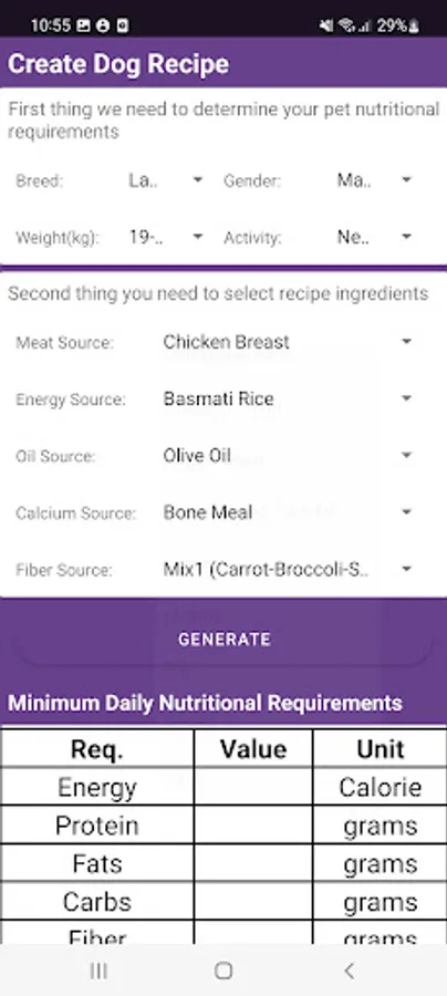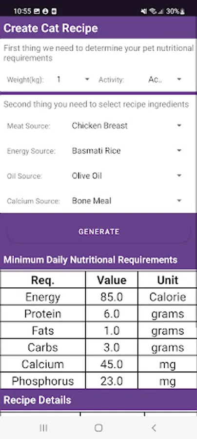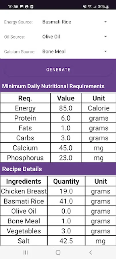 Pet diet maker is a state of the art app to make balanced diets for your pets.