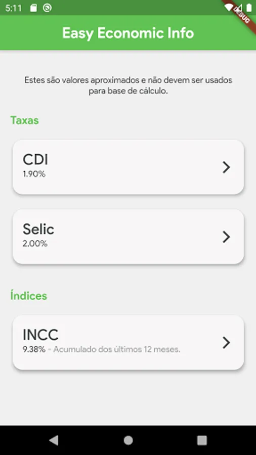 Welcome to Easy Savings. In a simple way, we try to bring the approximate values of the main existing market rates. Reinforcing that they are approximate values and should not be used for calculation basis. These are values such as SELIC, IPCA, INCC, CDI rates and indexes. New ones will be added soon.