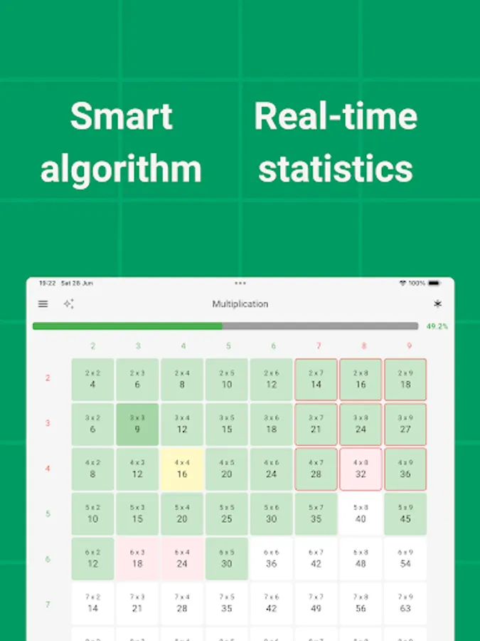 With our smart algorithm and real-time stats, you'll finally master all math facts — at your own pace.