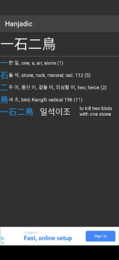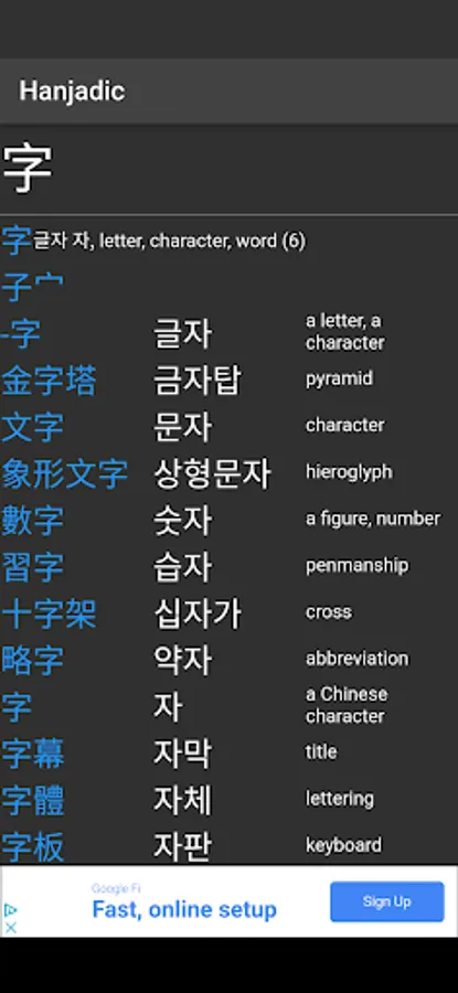 70-80% of Korean words are based on Chinese words. By learning the sound and Hangeul spelling of Chinese roots you can increase your Korean vocabulary. Using this app you can look up any word or character in English, Chinese or Korean and see all related words.