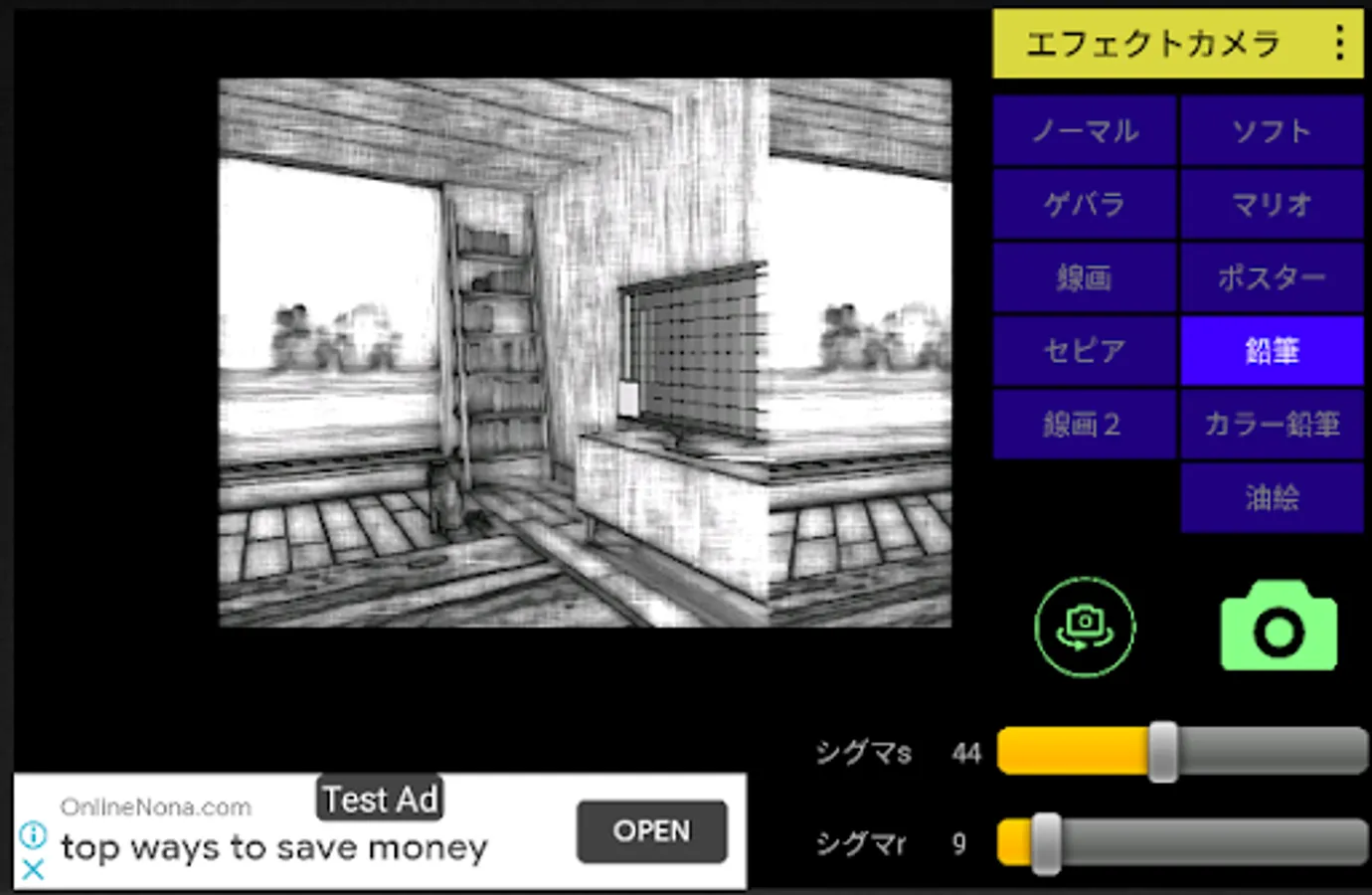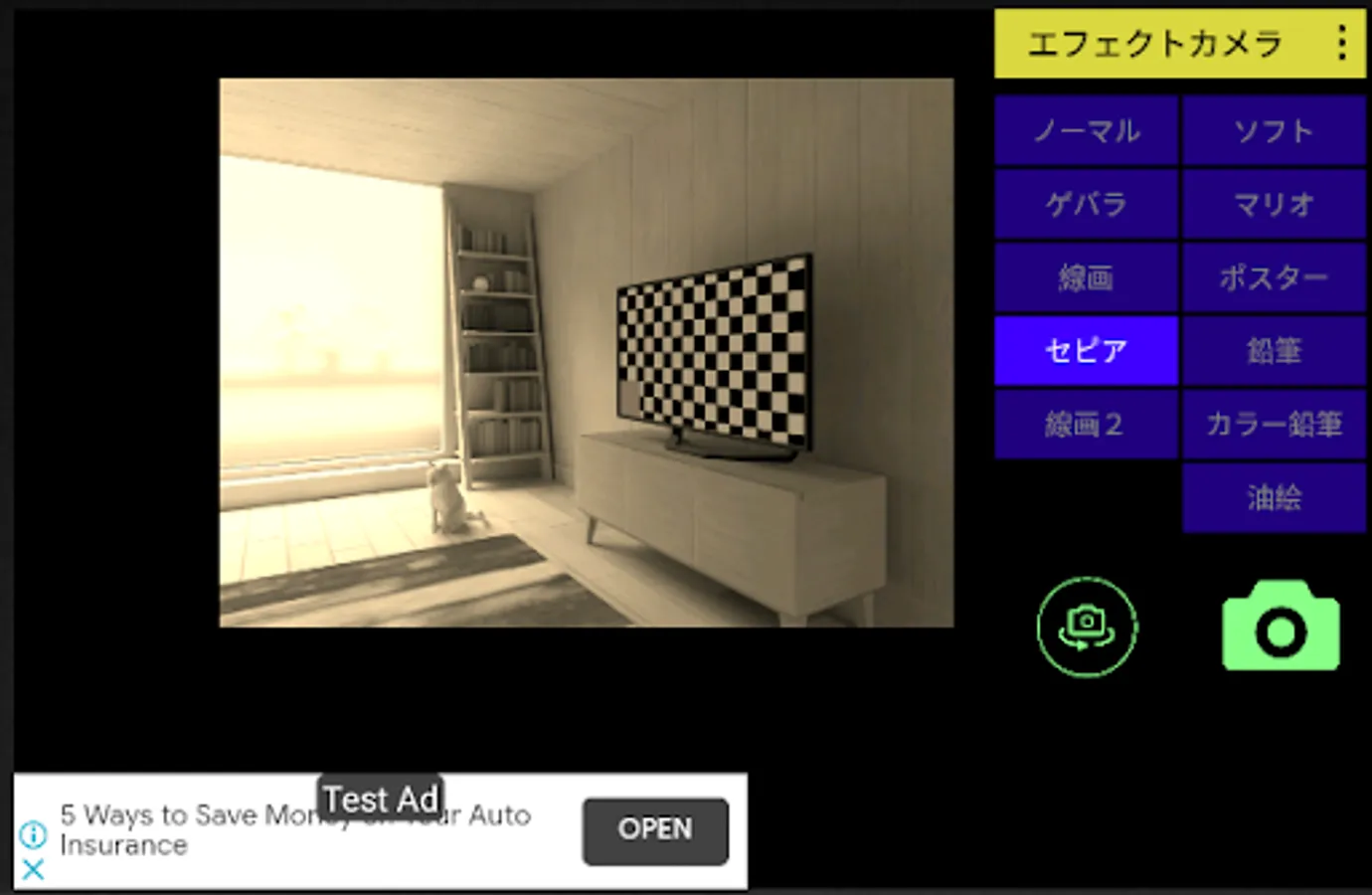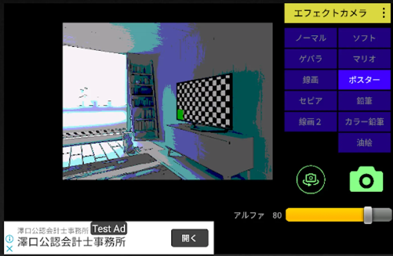 The camera image can be displayed and saved in real time with the following 10 types of effects.