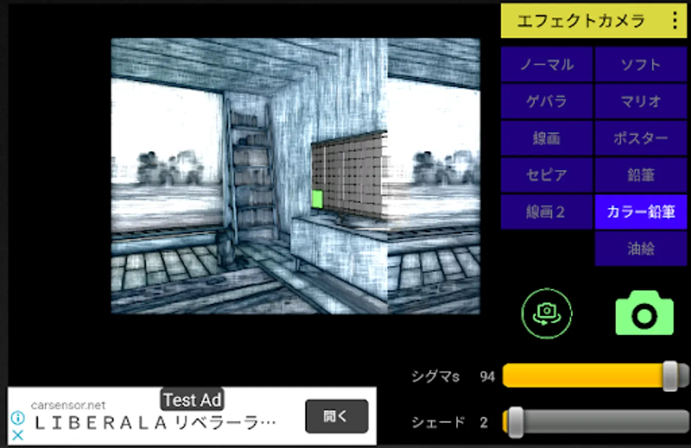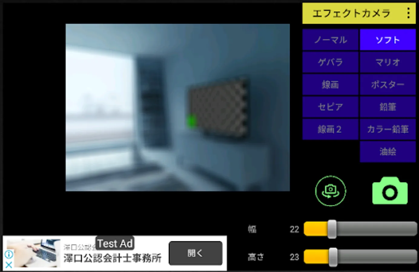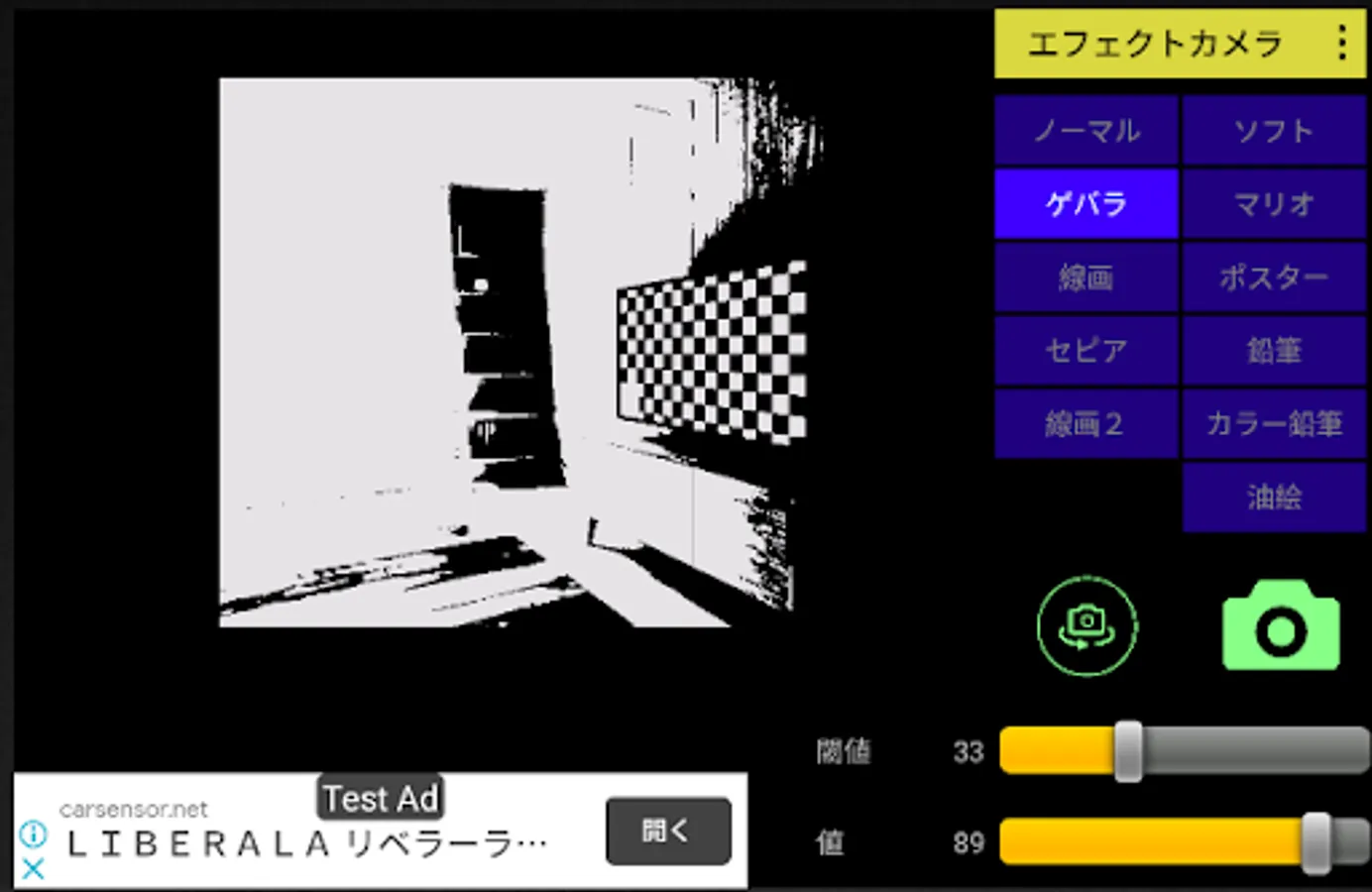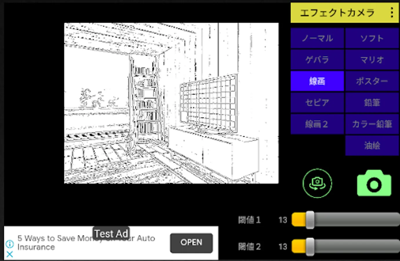 The camera image can be displayed and saved in real time with the following 10 types of effects.