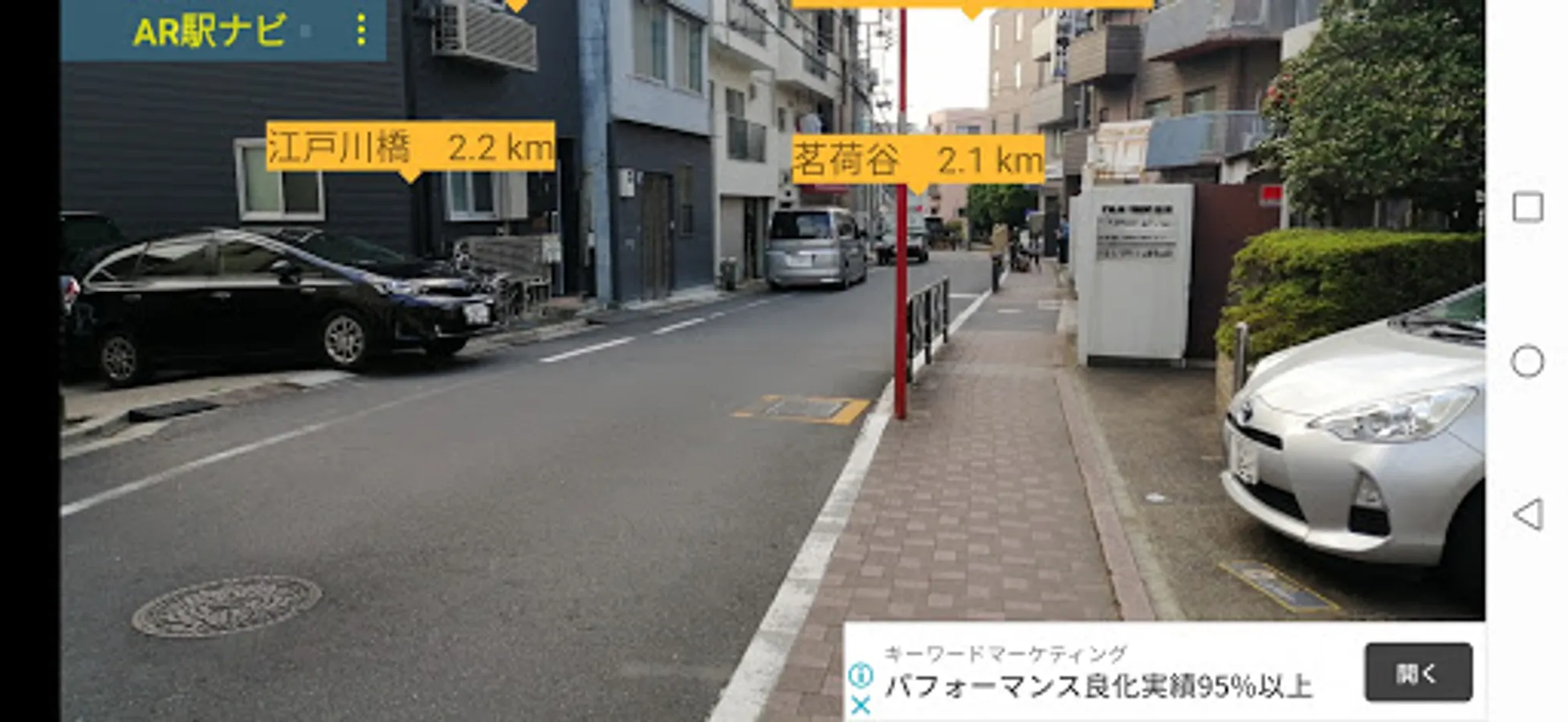 BC ARNAVI | AR Station Navi is an Android app that displays the direction and distance of the nearest station to the scenery captured by the camera. You can see the nearest station at a glance.