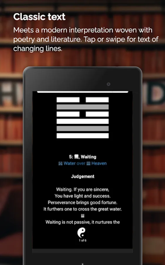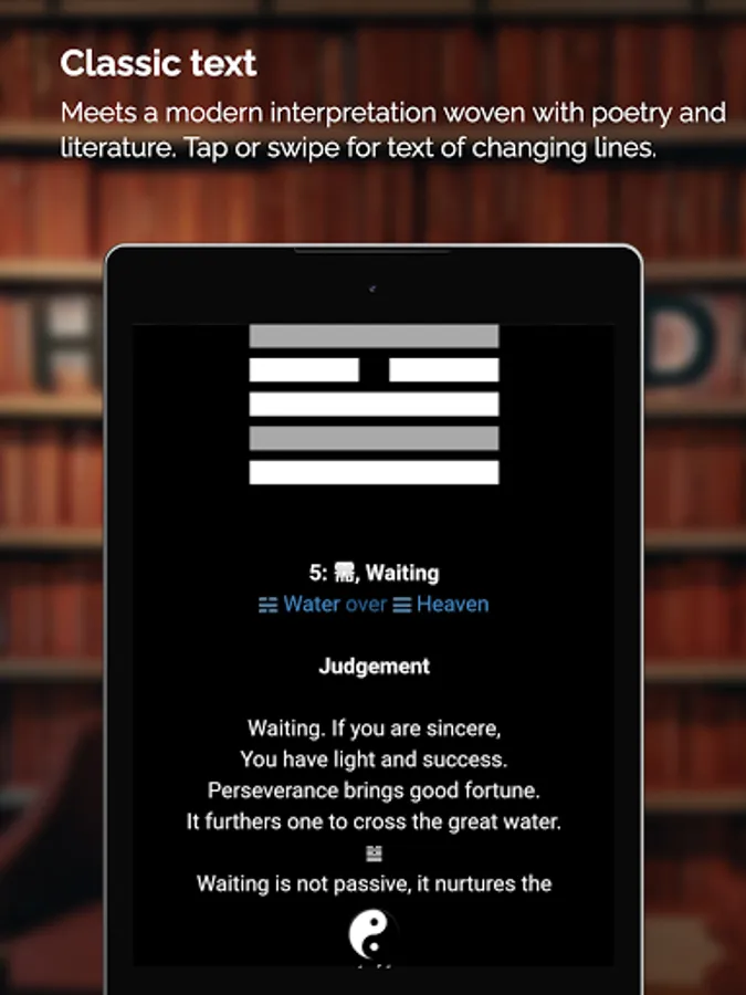 The wisdom and philosophy of the ancient Chinese texts blend seamlessly with commentaries that gently mix a dash of modern poetry, a pinch of humor, and cultural grace notes from the worlds of art, music, divination, and literature to bring you what many daily users have called the very best I-Ching / Yi Jing / Iching / I Ching app available.