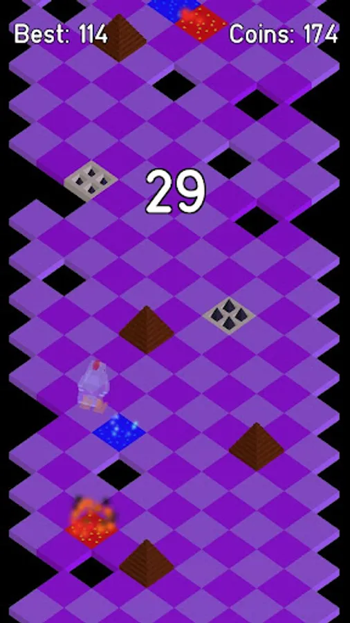 You play as a chicken (or as any of the other unlockable characters) that hops around in this checkerboard-like world that is full of traps and obstacles. Don't fall into any of the pit holes or off the board, avoid all traps.