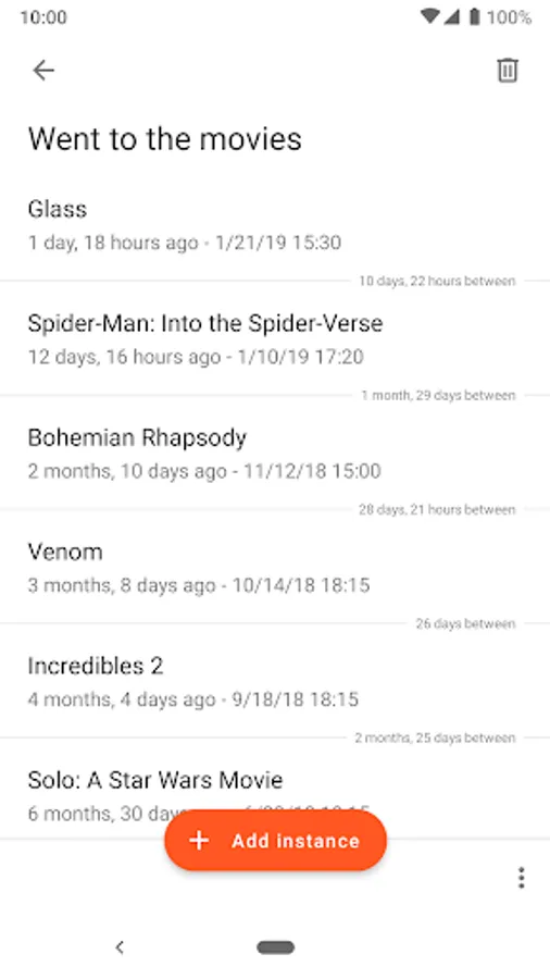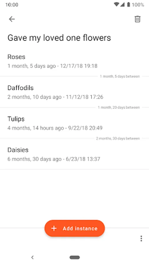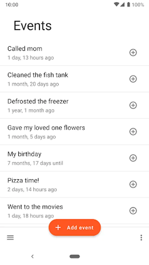 Are you having a hard time remembering when you did something last? Then this simple app can help you! Create Events you want to keep track of and then register Instances as they occur. For example, when did we paint the house the last time, defrosted the freezer, gave my loved one flowers, and so on. It's also possible to add a note to each instance.