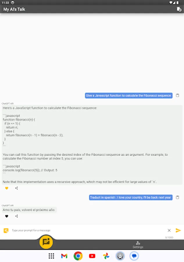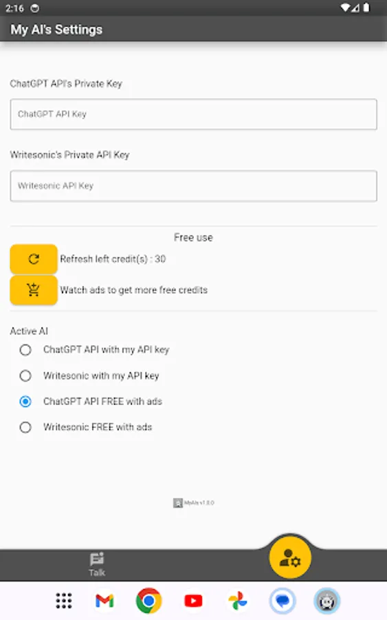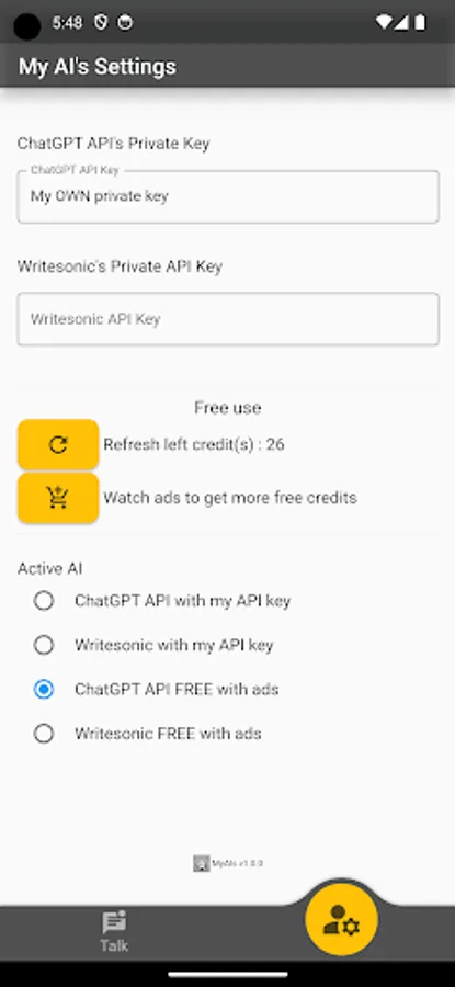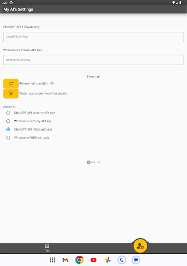 "MyAIs Talk" brings you the power of the best and well known AI of the moment.