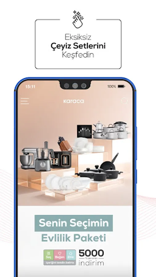 Good news for the newly weds! Beautiful dowry shopping packages are waiting for you in Karaca: Home, Life and Kitchen application. Bringing a unique touch to your bedroom with Happy Marriage dowry packages, Karaca puts you in control of the kitchen with the package of Your Choice. You choose the content of the dowry set with Karaca's DIY packages. Complete all your needs with unique discounts and special offers for Karaca!
