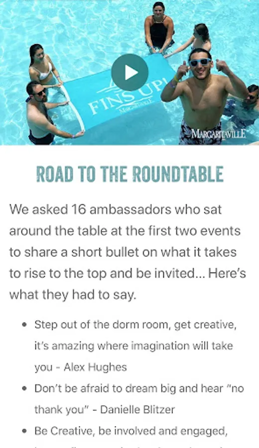 At Margaritaville University, a beach isn’t required, because our mission is to spread the Margaritaville lifestyle to college students, create a genuine relationship with ambassadors and their peers, and together continue to develop a fun and rewarding ambassador program.