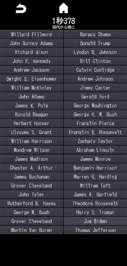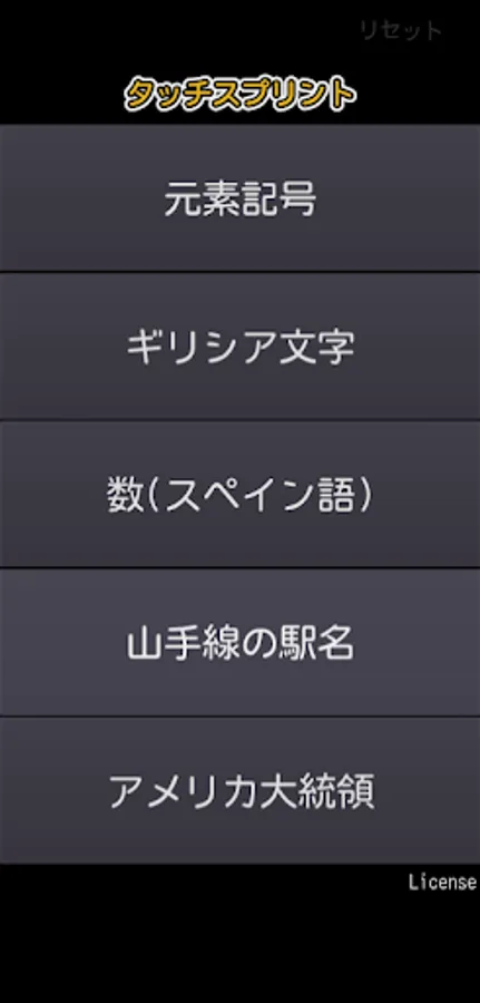 It is a game where you touch element symbols, Greek letters, numbers (Spanish), Yamanote Line station names, and the President of the United States in order.