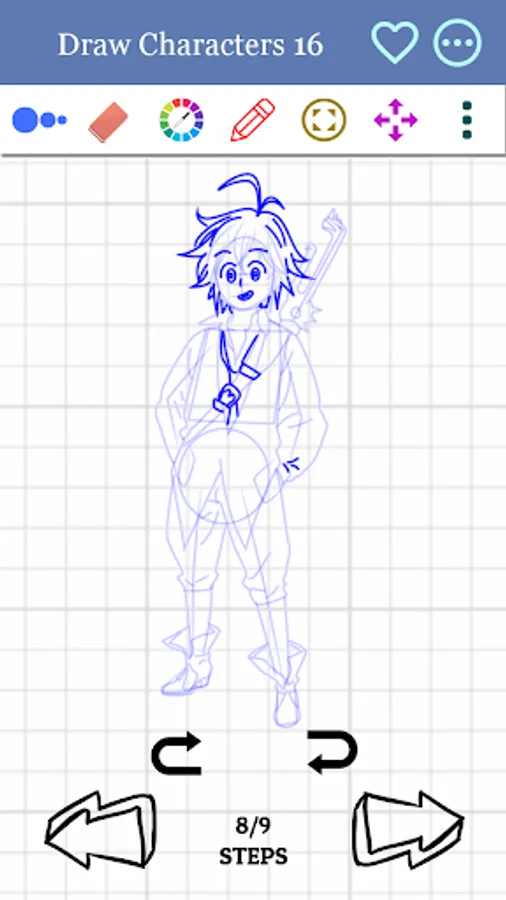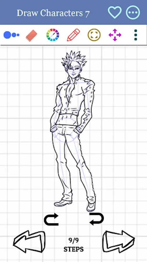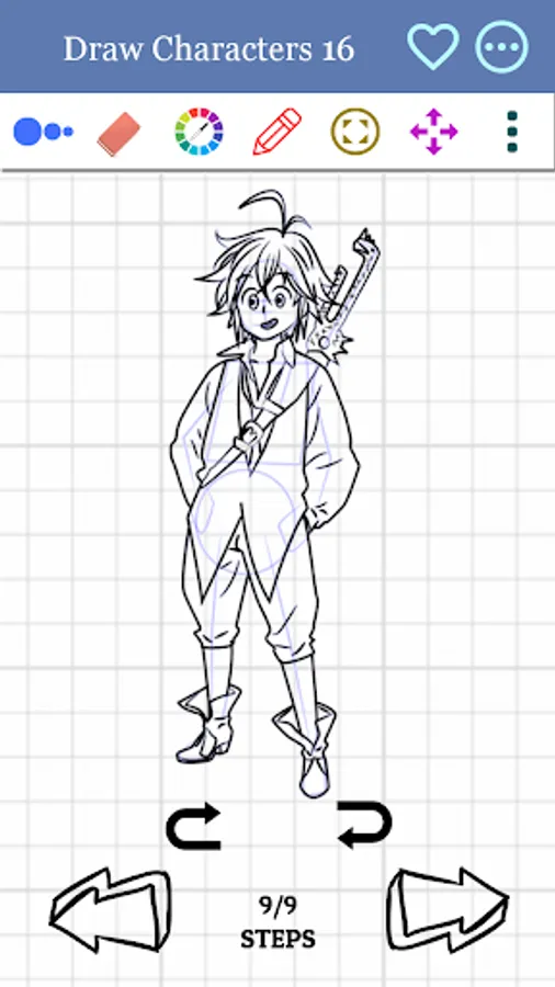 How to Draw Deadly Sins is a app where even non professional can learn to draw Deadly Sins with our step by step guide. Each Characters has 5 to 15 steps to complete. you can also use tools to draw characters within app, tools like pencil,eraser,move,zoom,color and more.