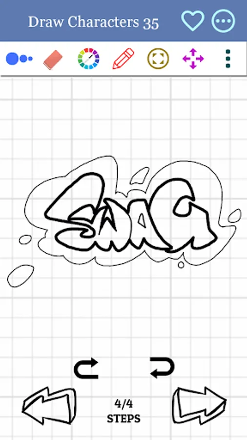 How to Draw Graffiti is a app where even non professional can learn to draw Graffiti with our step by step guide. Each Characters has 5 to 15 steps to complete. you can also use tools to draw characters within app, tools like pencil,eraser,move,zoom,color and more.