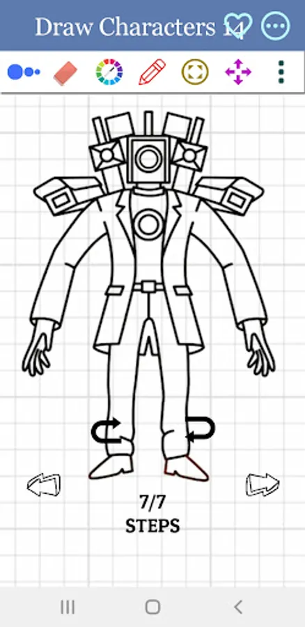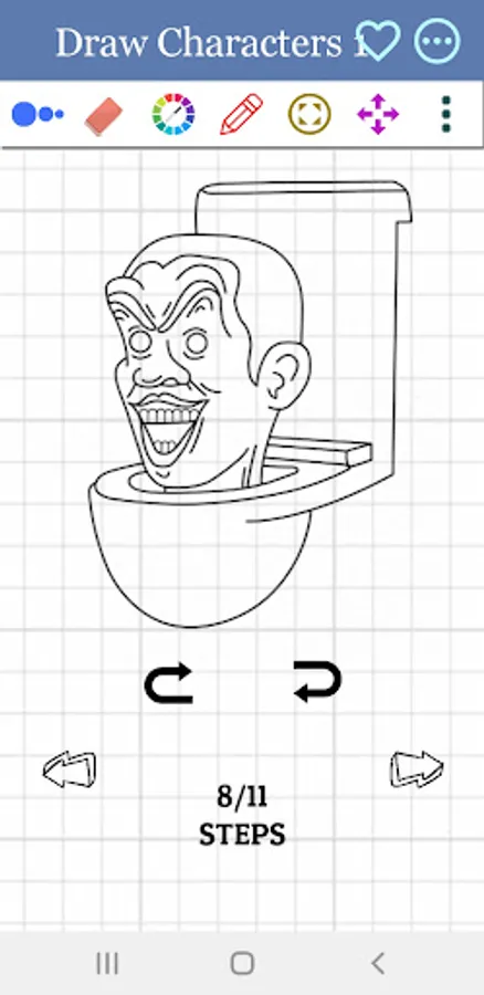 How to Draw Skibidi Toilet is a app where even non professional can learn to draw characters with our step by step guide. Each Characters has 5 to 15 steps to complete. you can also use tools to draw characters within app, tools like pencil,eraser,move,zoom,color and more.