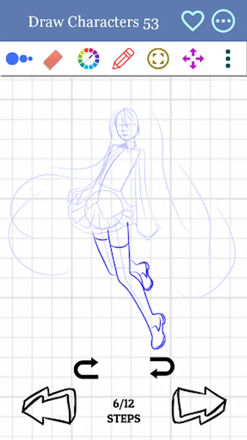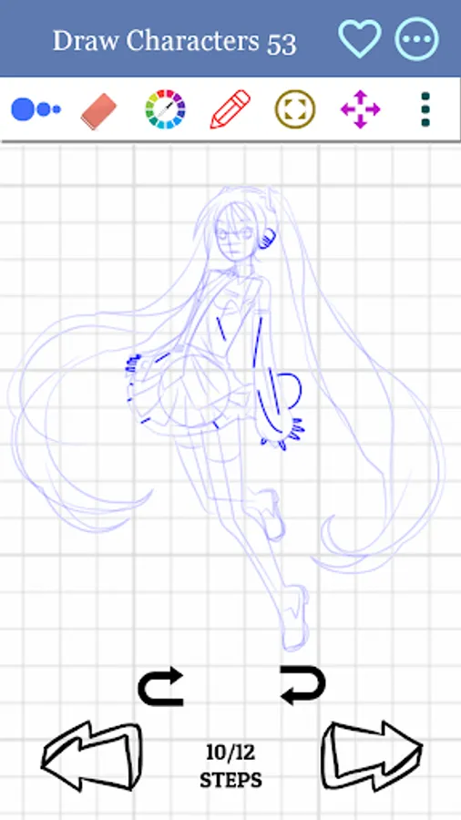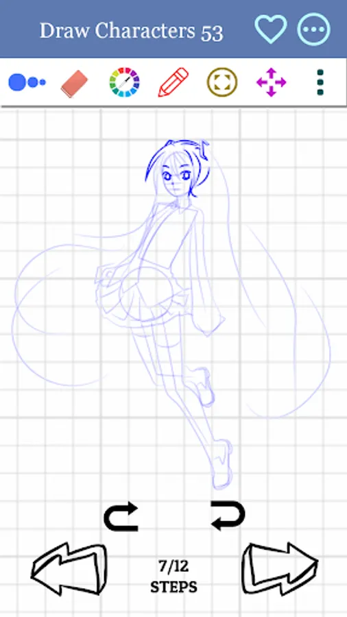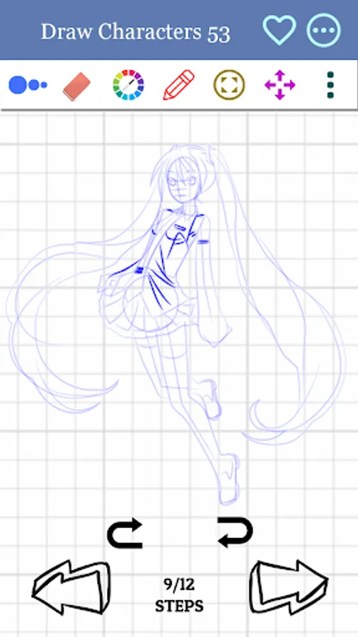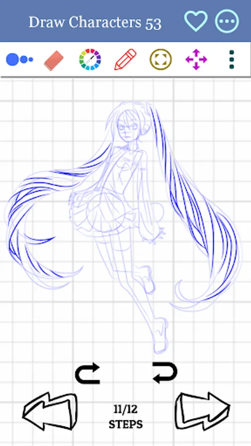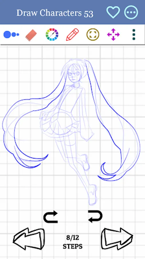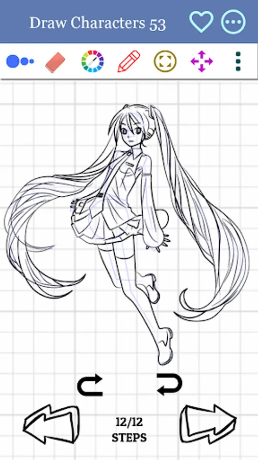 How to Draw Vocaloid Miku Characters is a app where even non professional can learn to draw Vocaloid with our step by step guide. Each Characters has 5 to 15 steps to complete. you can also use tools to draw characters within app, tools like pencil,eraser,move,zoom,color and more.
